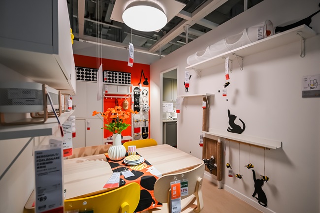 宜家徐汇商场改造参考了徐汇顾客真实的户型,基于核心客群年轻化与家庭化趋势,提供符合年轻人和有孩家庭需求的小户型展间、共享客厅、儿童成长型空间等;结合上海浓郁的咖啡文化,提供10组不同形式、不同风格的“家庭咖啡角”解决方案;徐汇商场在每个功能区域打造了人宠独立与共享空间;随着“银发经济”的深入,徐汇商场也推出了适老化家居展间,展示长者友好系列产品。