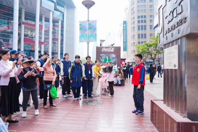 黄浦区小小红色宣讲员结合历史,生动讲述南京路上不同点位的红色记忆,除了参与活动的市民,不少途径的游客也停下脚步驻足聆听,纷纷打开手机记录南京路上的初心记忆。