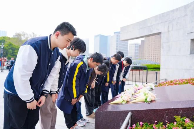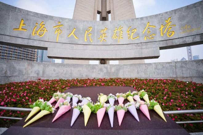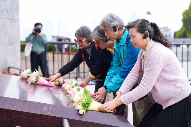 一路行走,一路感悟;一路追思,一路传承。经过近2.5km的沿途寻访,队伍抵达位于黄浦公园的人民英雄纪念塔下。黄浦区小小红色宣讲员、格致中学学生代表、市民分别手持鲜花,整齐列队,在纪念塔前肃立默哀,向为上海解放和革命事业英勇献身的英烈们深深鞠躬、致敬献花,表达对英烈的深切缅怀与崇高敬意。
