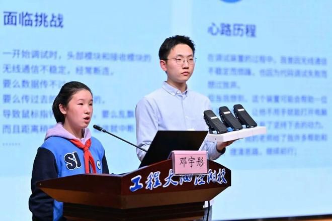 鼠标被拆解为3个踏板和一个佩戴在头部的移动控制器,各个模块通过无线连接后,一个能够帮助手部残障人士使用的鼠标就诞生了。“我选择使用加速度计来实现鼠标的移动,将它戴在头上,就能跟用手一样操控鼠标的移动;踏板分别代表左键、右键、回车键3个常用电脑按键,它们结合在一起,不用手也能使用鼠标。”工程大泗泾附校六年级学生邓宇彤设计了“无障碍头控鼠标”,她希望这款物美价廉的小装置能解决他人的实际困难,为生活带来切实便利。