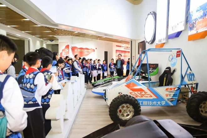 附校同时鼓励学生走进大学校园,学校整合上工程的航空展示馆、轨道交通展示馆、起车展示馆等特色场馆资源,开发了“交通中国”思政研学路线,为小学提供参观、认知的空间,为中学生提供实践、体验的平台;学校与上工程共同组织“碳之足迹”课外科普体验活动,发现生活中的隐藏节能小方法、感受节能奥秘;“大学校园行科学探索 ”已成为学生、家长都期待的活动,附校学生走进上工程的航空运输学院,近距离接触了民用航空发动机、逃生舱,走进汽车消音实验室、材料科普实验室、邮轮实验室等,并完成自己的学习记录单。