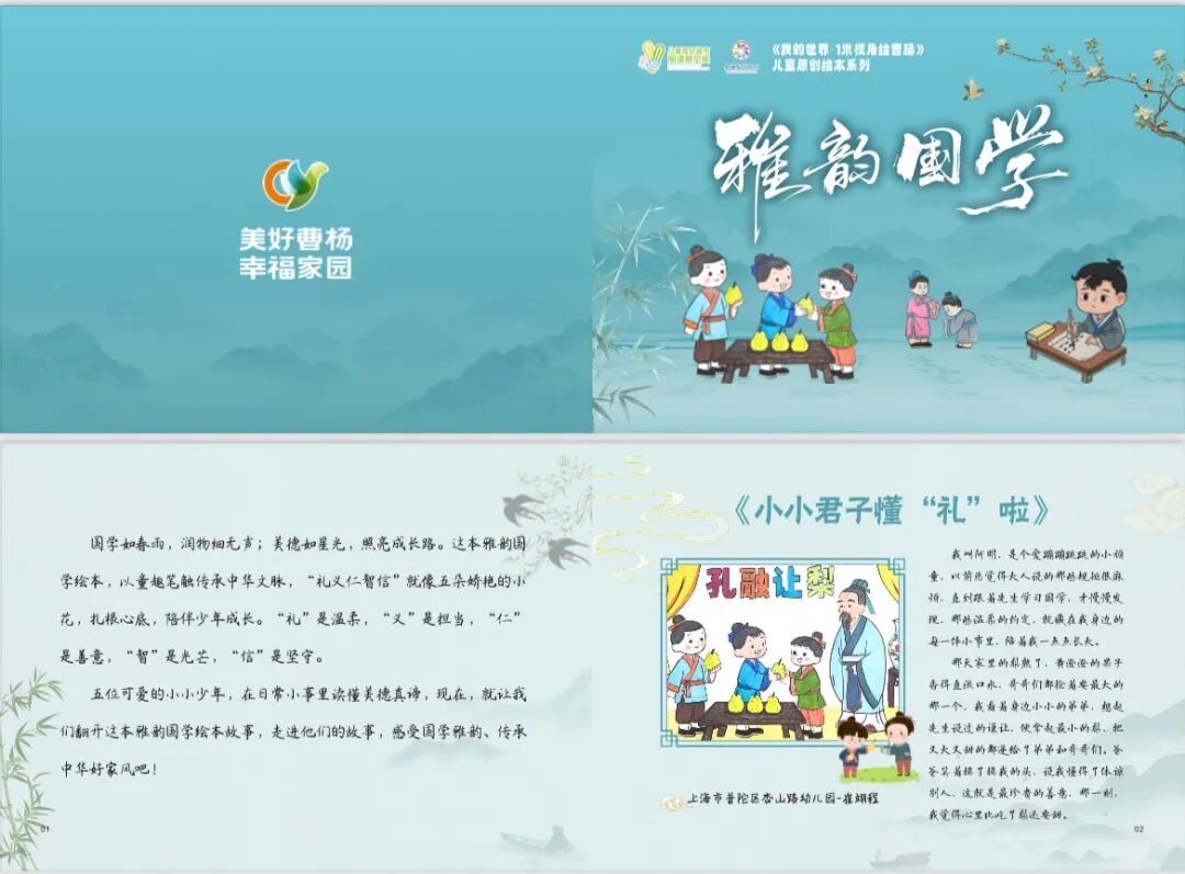 前期,街道系统开展国学知识普及、线上诵读打卡、礼仪培训等系列活动,扎实推动国学礼仪进校园、进社区、进家庭。本次活动中,“我的世界 一米视角”儿童原创绘本——“国学雅韵”青色绘本专刊正式亮相。这本绘本完全由社区孩子们亲手创作,拱手行礼的谦谦少年、端坐学堂诵读经典的认真模样……孩子们用画笔将自己理解的“礼”与“国学”变成了色彩斑斓的故事。